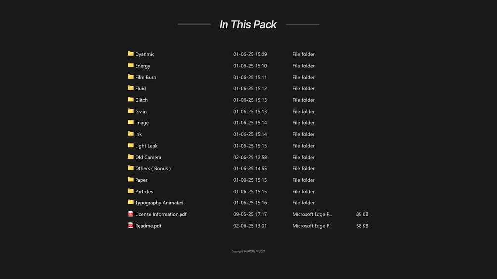 Take your visuals to the next level with this versatile overlay collection. Ideal for editors who want to add polish, motion, and cinematic flair to their content—without spending hours in post.
